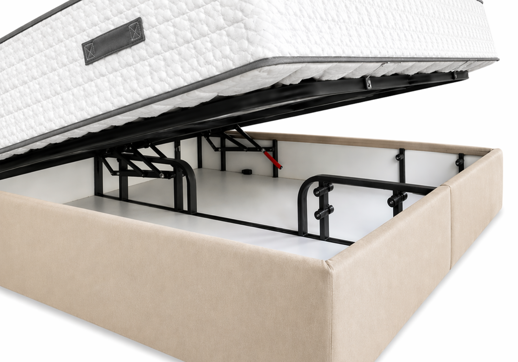Der integrierte Bettkasten bietet dir grosszügigen Stauraum für Bettwäsche, Kissen oder Decken. Dank dem leichtgängigen Stoßdämpfersystem mit Sicherheitsverriegelung lässt sich der Stauraum komfortabel und sicher öffnen.