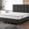 Dank der robusten Verarbeitung, dem frei im Raum stellbaren Kopfteil und dem integrierten Bettkasten mit Stauraum bietet dieses Boxspringbett die ideale Kombination aus Design und Alltagstauglichkeit. Erhältlich in den Grössen 140×200 cm, 160×200 cm und 180×200 cm.