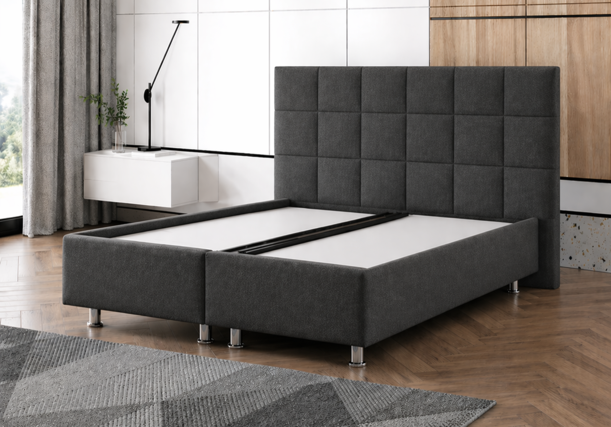 Bestelle jetzt das Boxspringbett Florenz in Anthrazit mit Karo Kopfteil ohne Matratze und stelle dir dein individuelles Schlafsystem zusammen. Hochwertige Materialien, modernes Design und praktischer Stauraum machen dieses Bett zur perfekten Wahl für dein Zuhause.